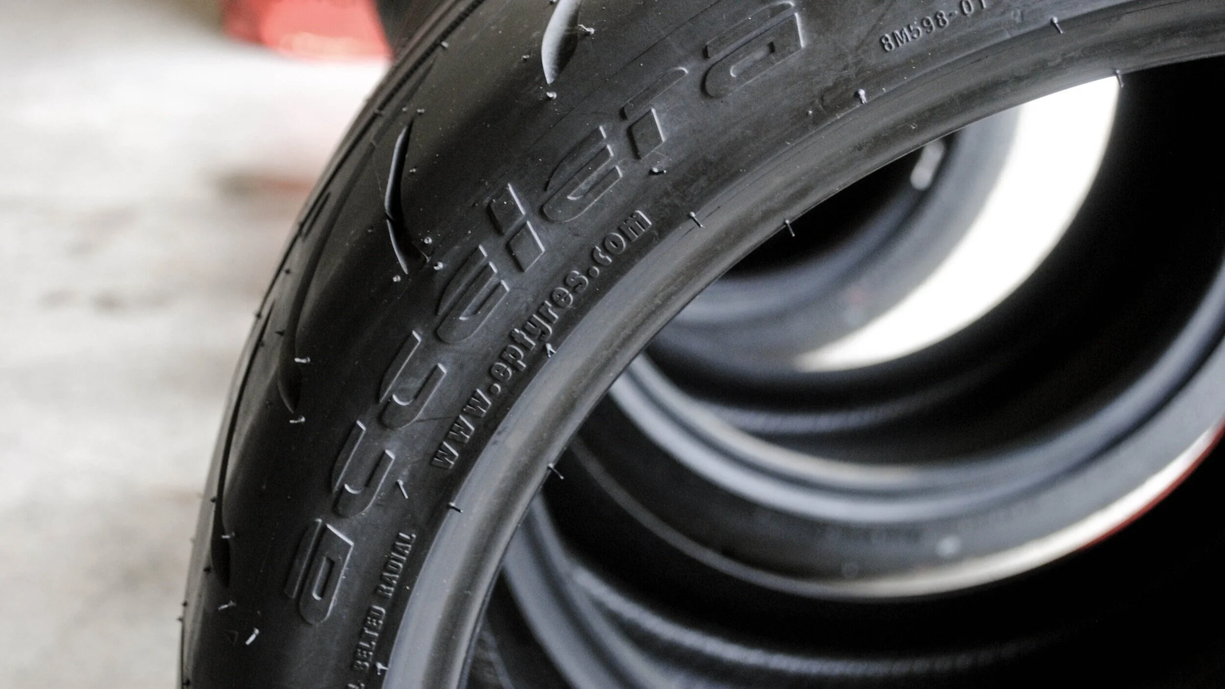 As tires are air-filled, they tend to want to 'bulge' out a bit. As they bulge on the contact patch, you end up in a situation where you may not be getting the entire contact patch fully on the track surface at the same time. You can determine this by using a piece of chalk or a light-colored marker on the face of the tire near the edge of the tread block. As you run the course, the track surface will show you where your tires are wearing and tell you how to compensate. Are you rolling over onto the sidewall and out of the tire tread? Add some pressure. Are you not using the entire tire tread to its fullest? Remove a few PSI. Once you're maximizing your tread, you've now pretty much settled on a target PSI. In my car, this equates to about 38 PSI in the front, and about 36 in the rear.